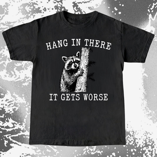 Hang In There It Gets Worse Raccoon Shirt