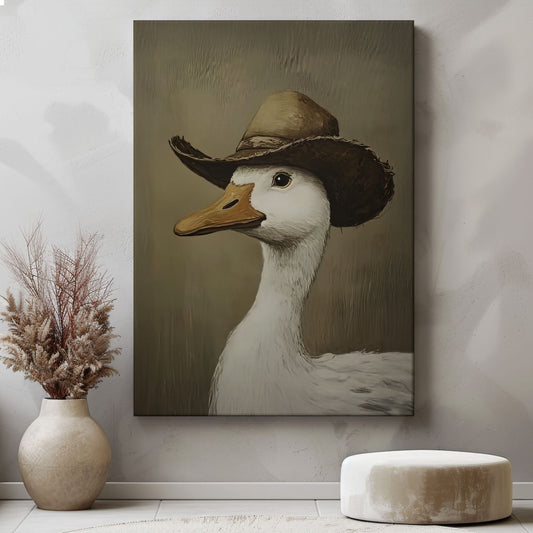Cowboy Duck Canvas | Funny Rustic Farmhouse Wall Art for Country Lovers