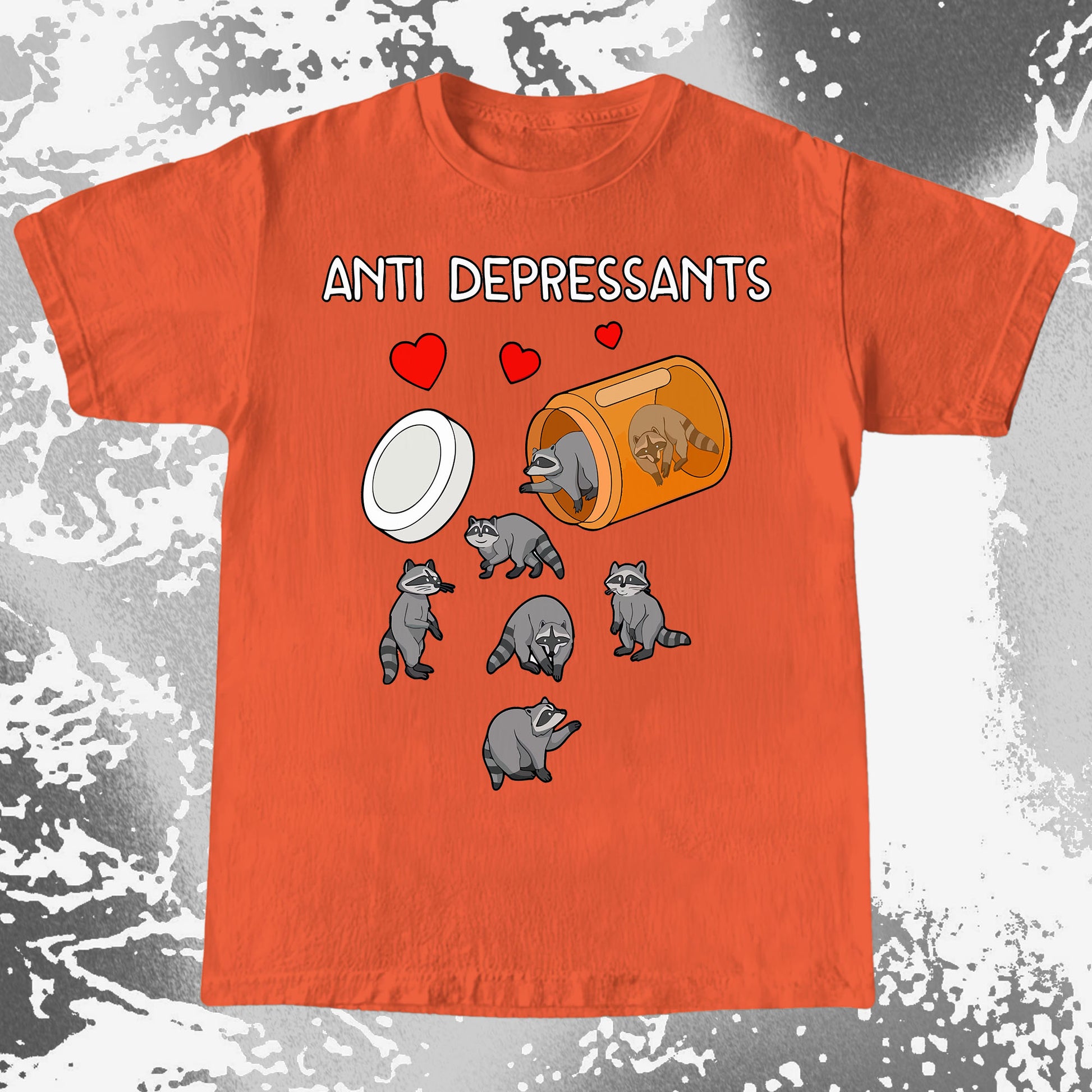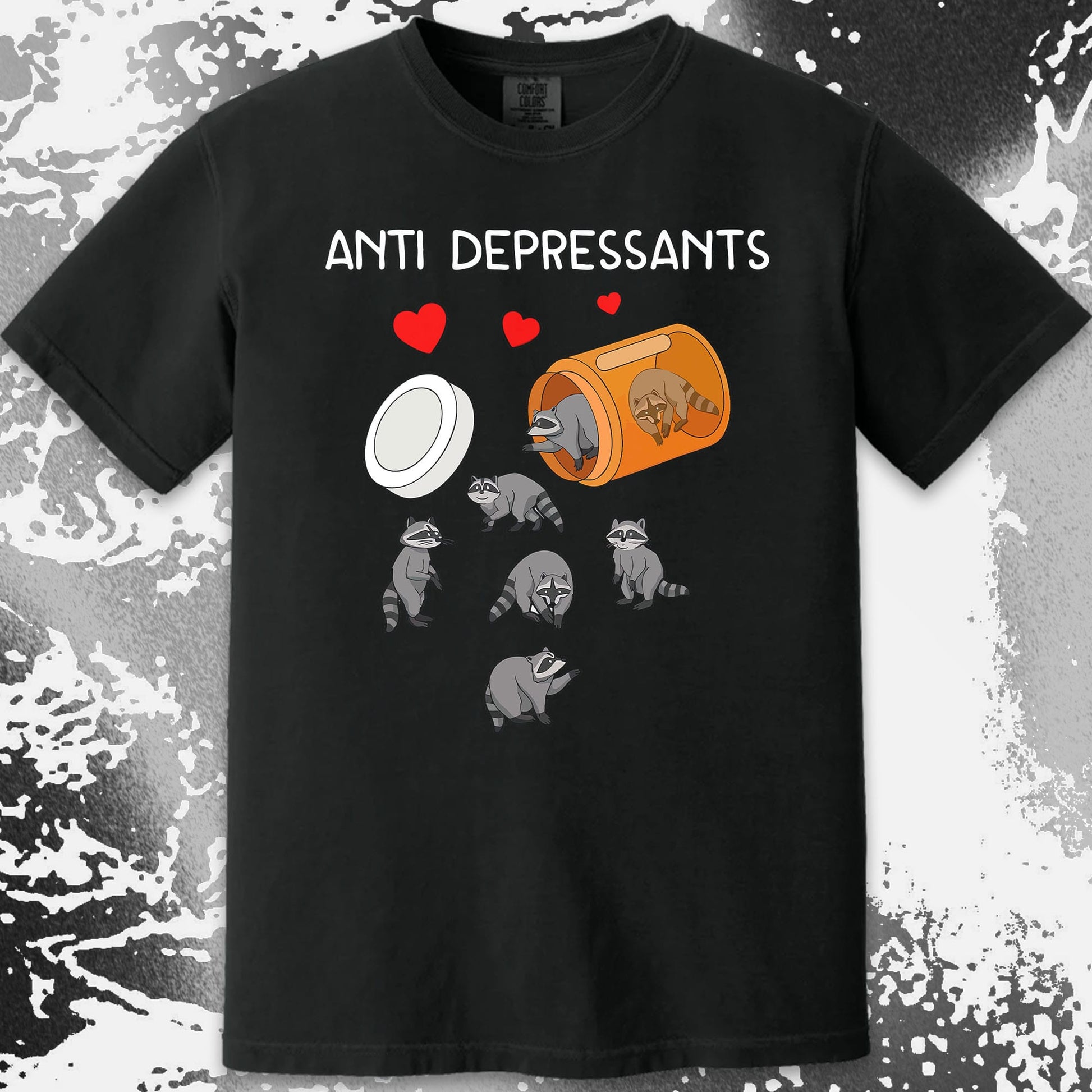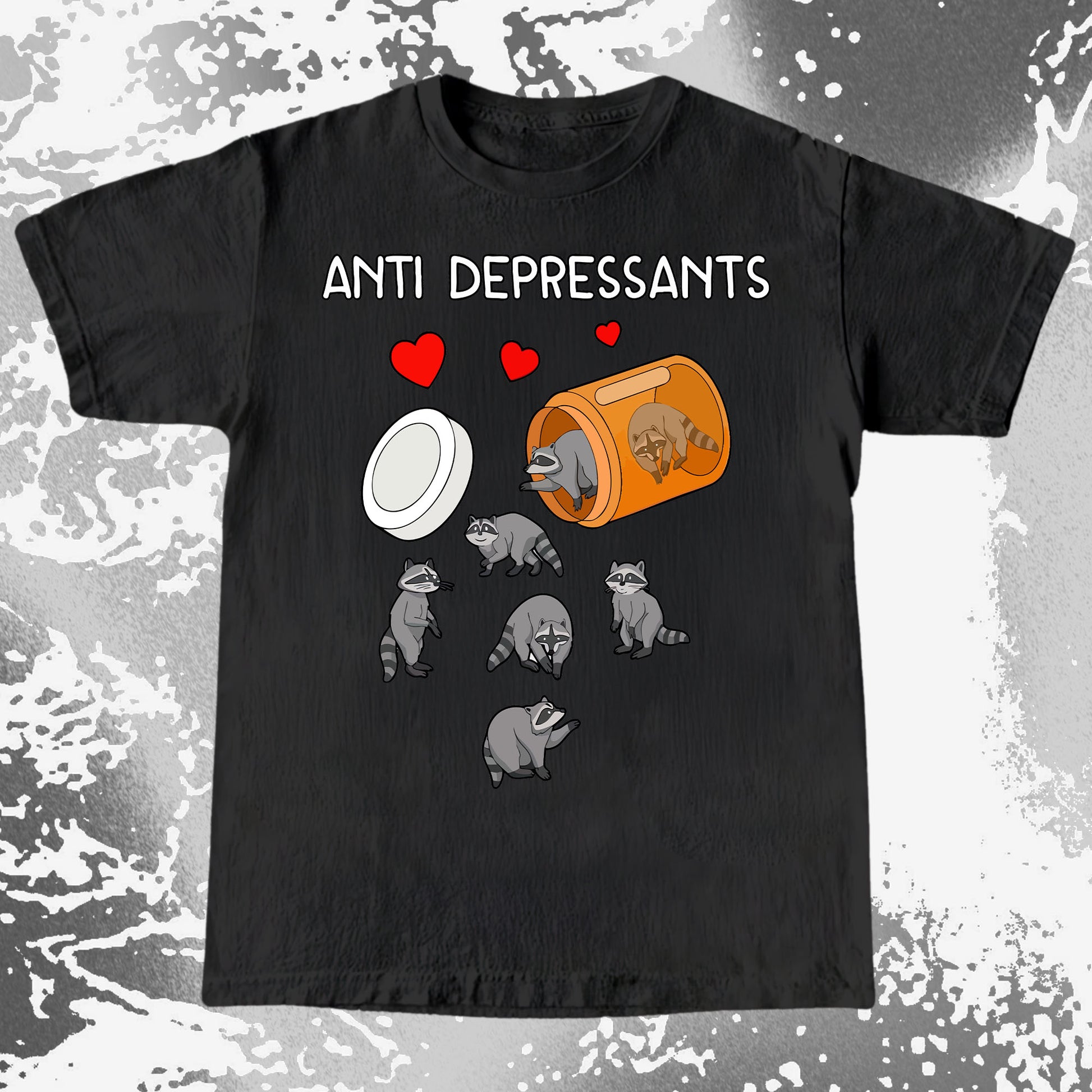 Anti Depressants Raccoon Shirt – Soft Dark Humor Mental Health Art