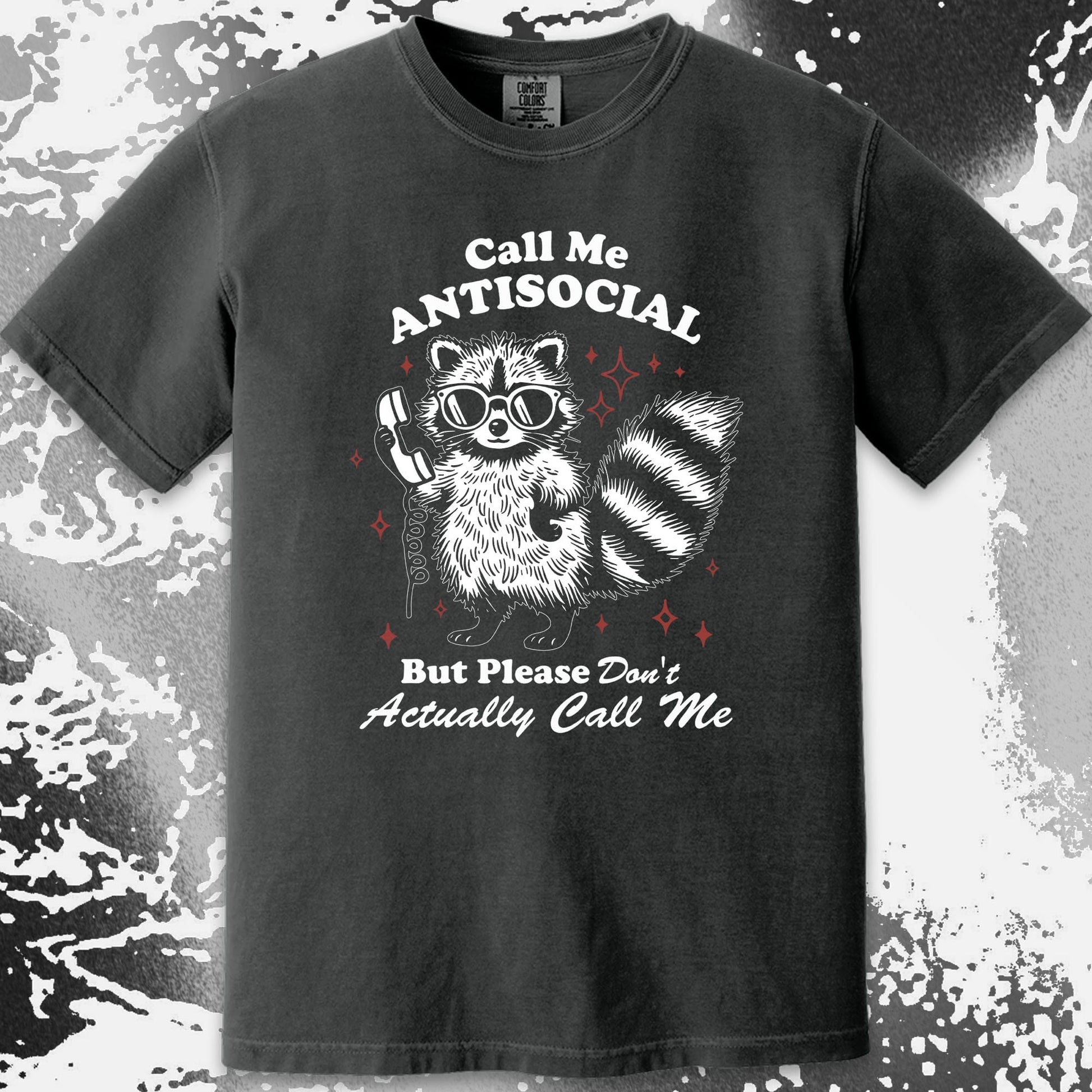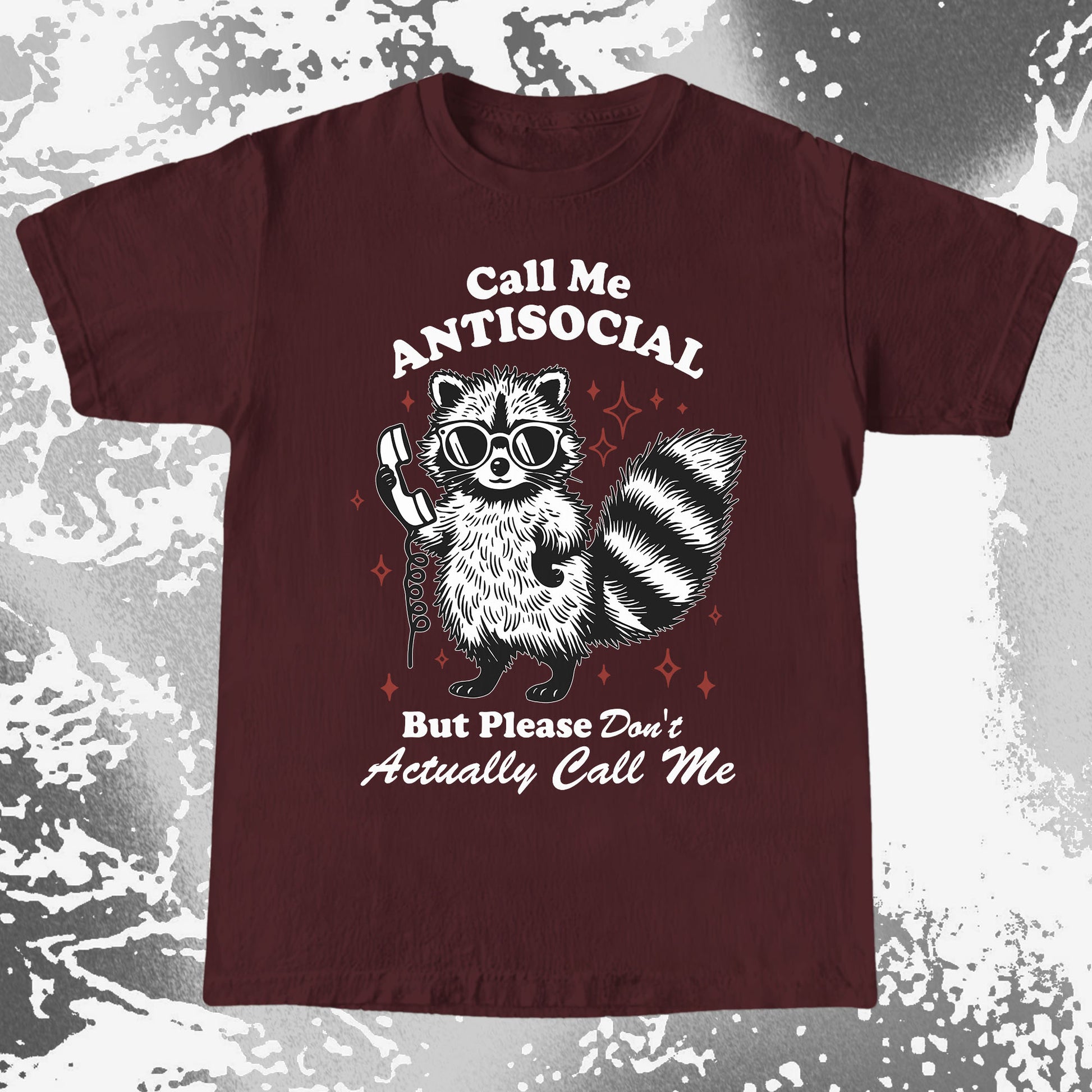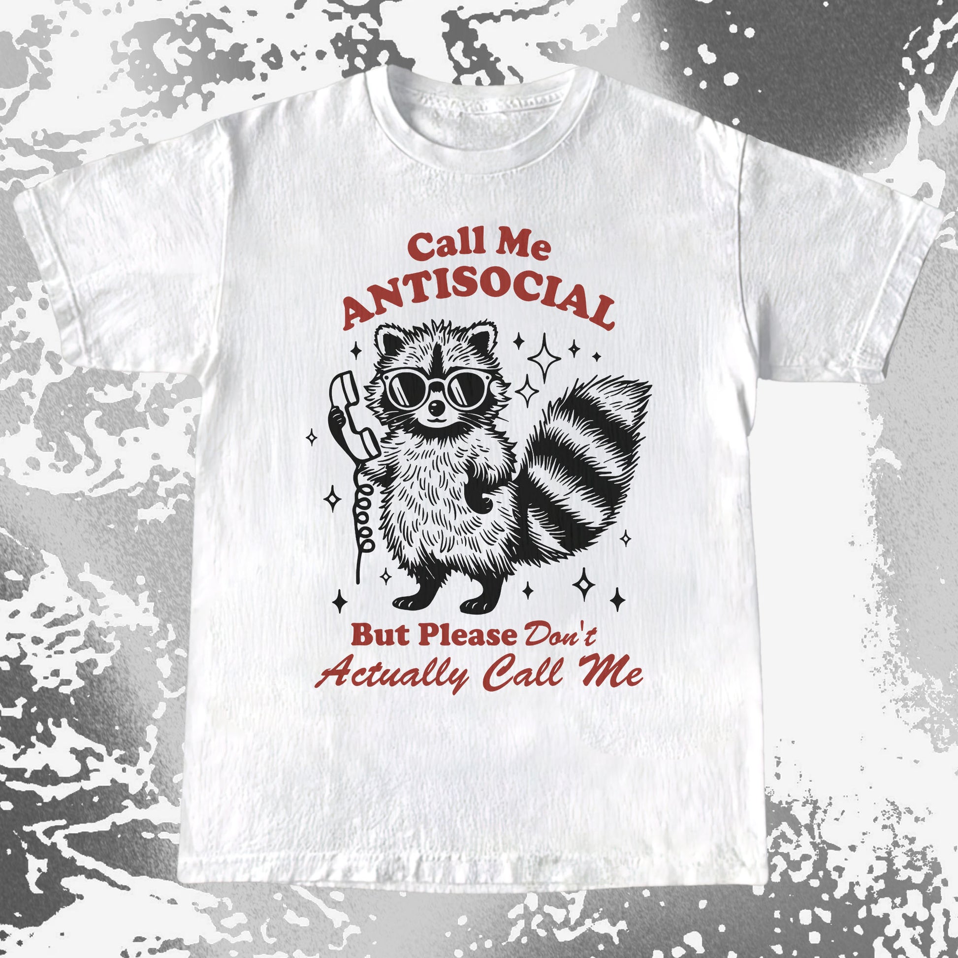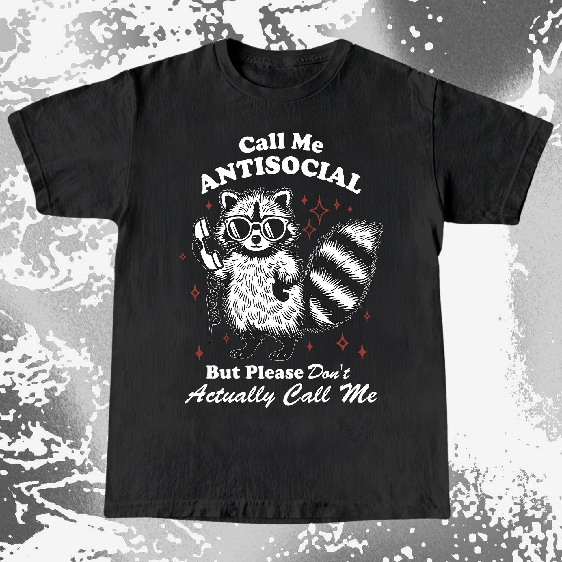 Call Me Antisocial Raccoon T-Shirt – Please Don’t Actually Callv