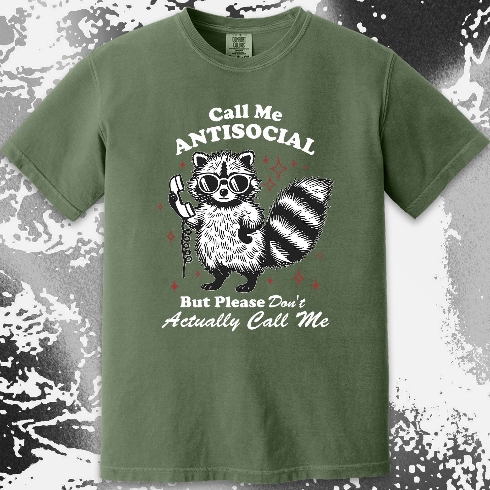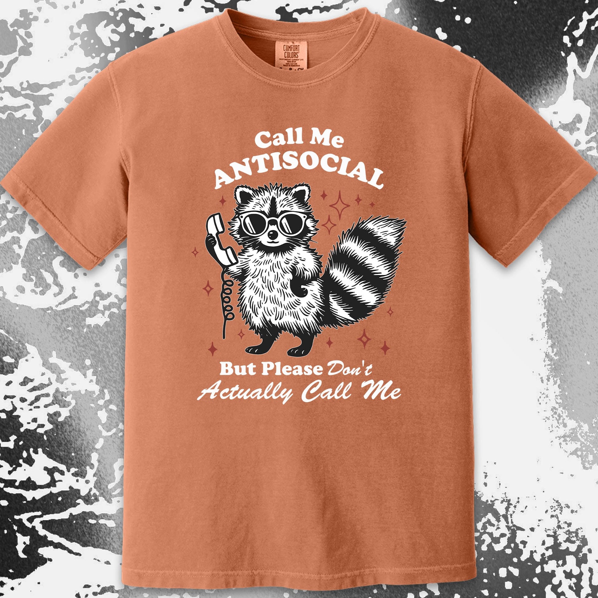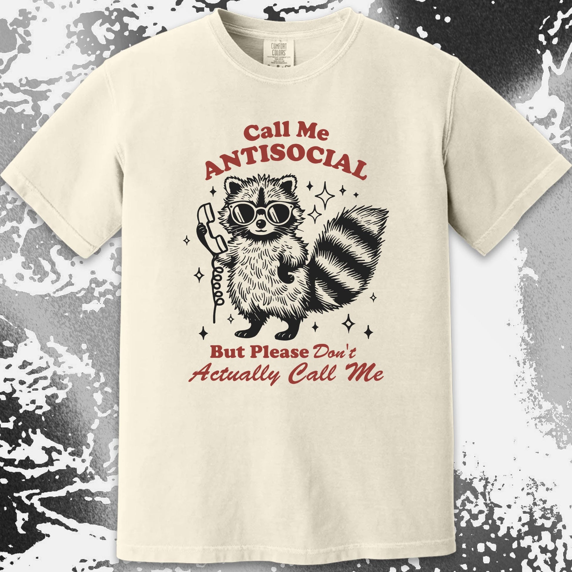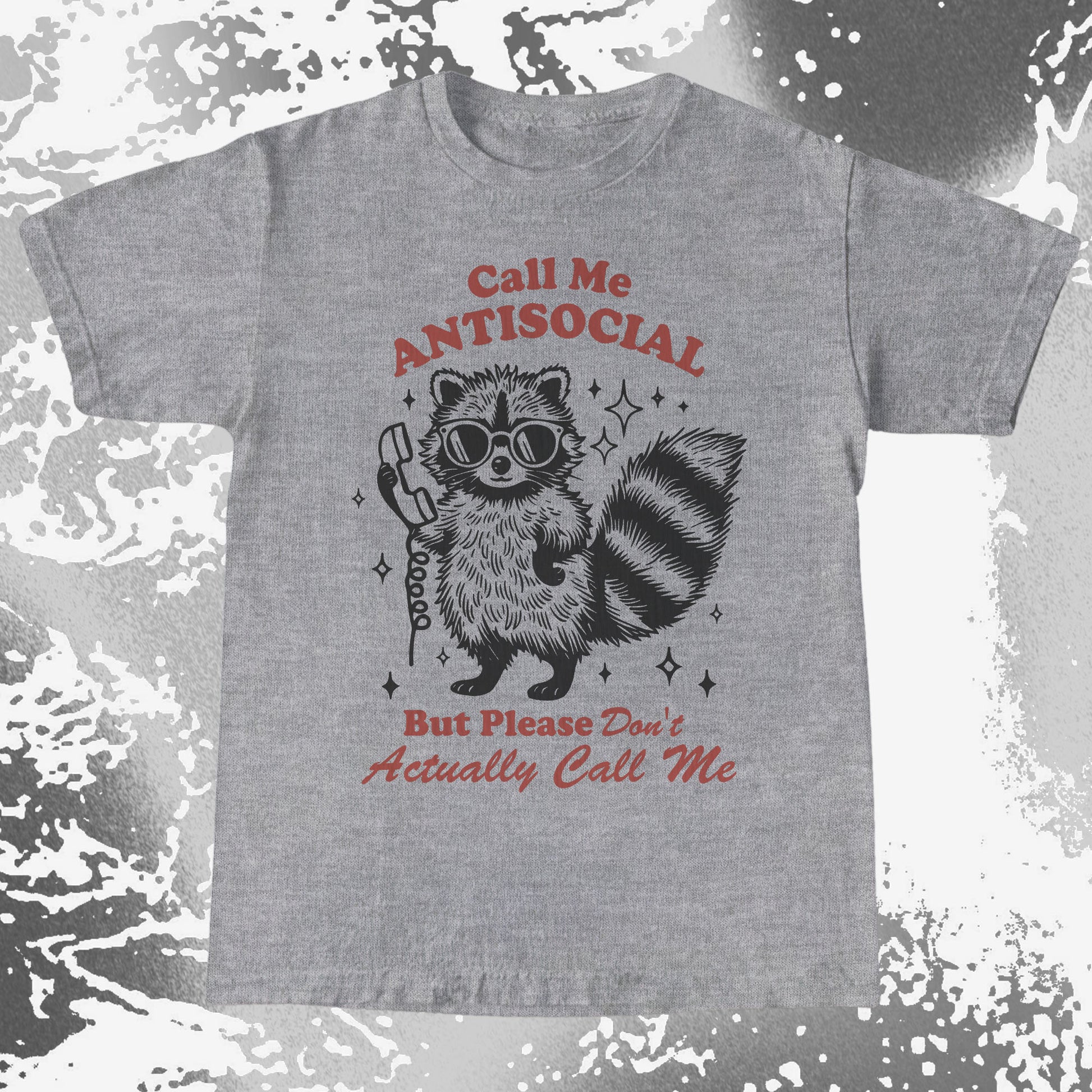 Call Me Antisocial Raccoon T-Shirt – Please Don’t Actually Callv