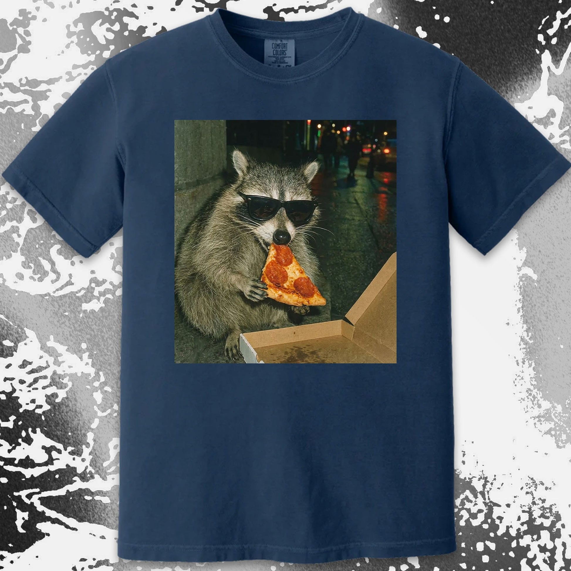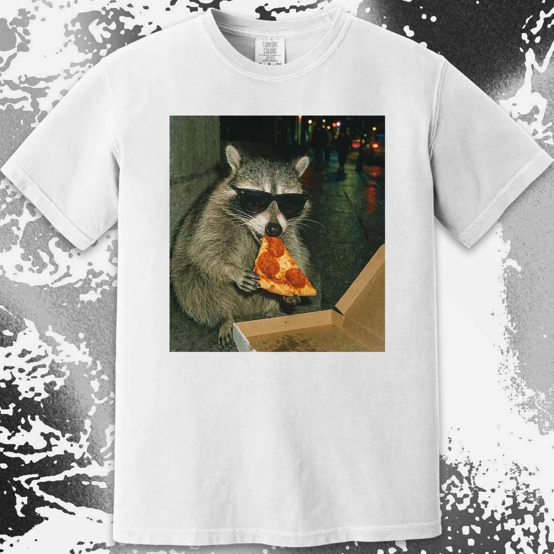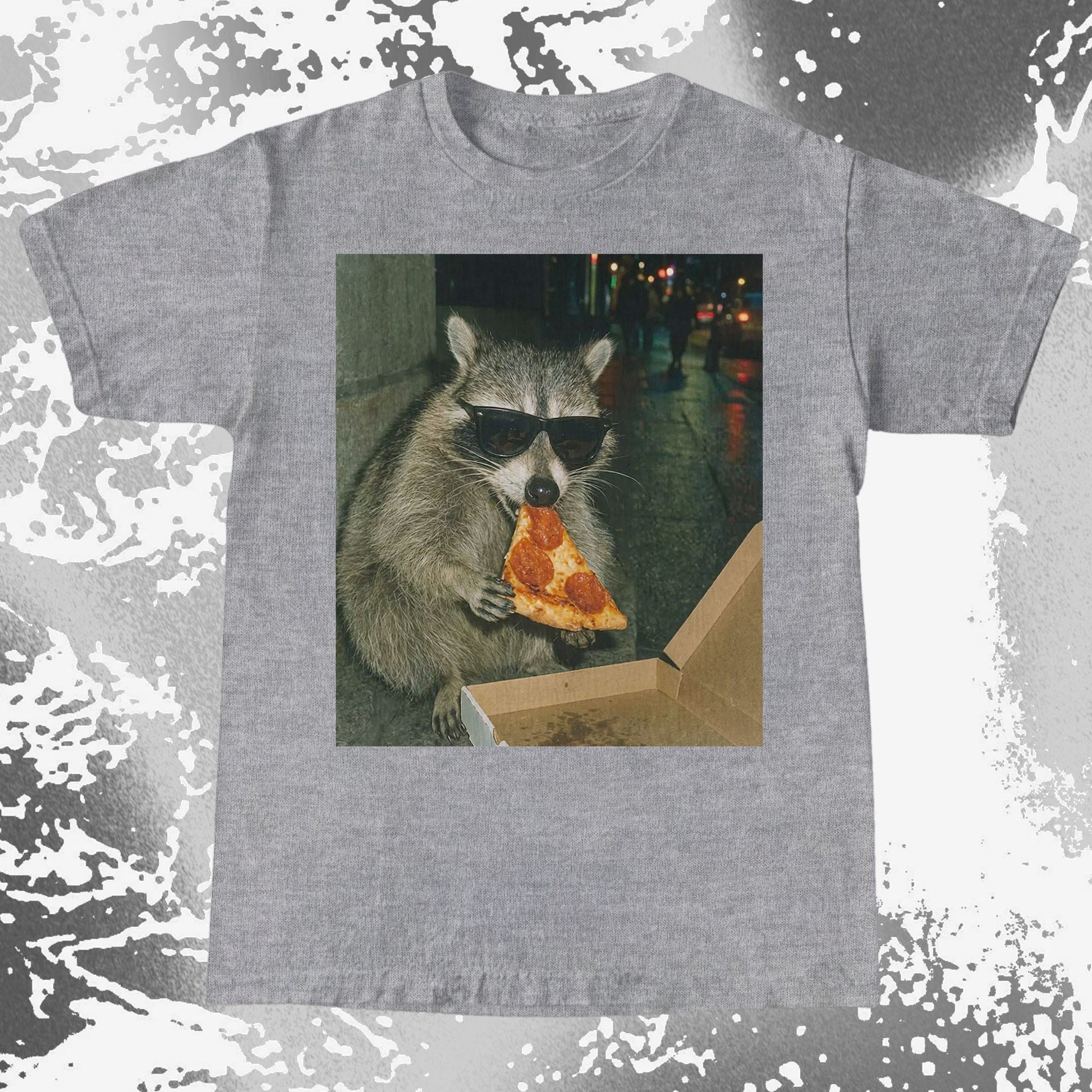 This shirt captures a raccoon living its best nightlife, rocking shades and stealing a slice like it owns the street. It’s effortlessly cool, proudly chaotic, and honestly the energy we all wish we had on a Friday night.