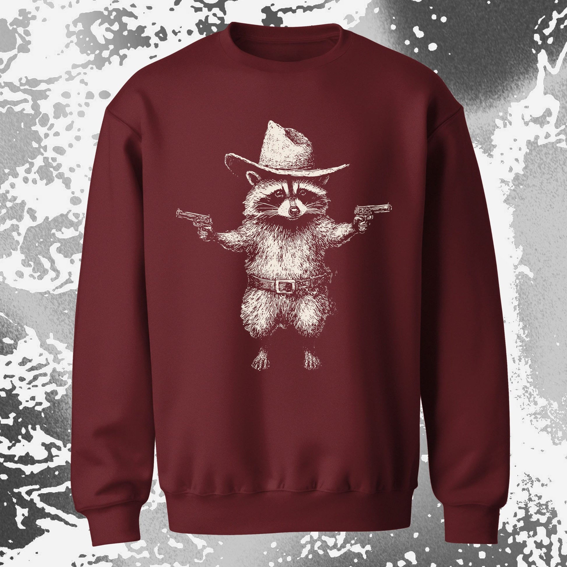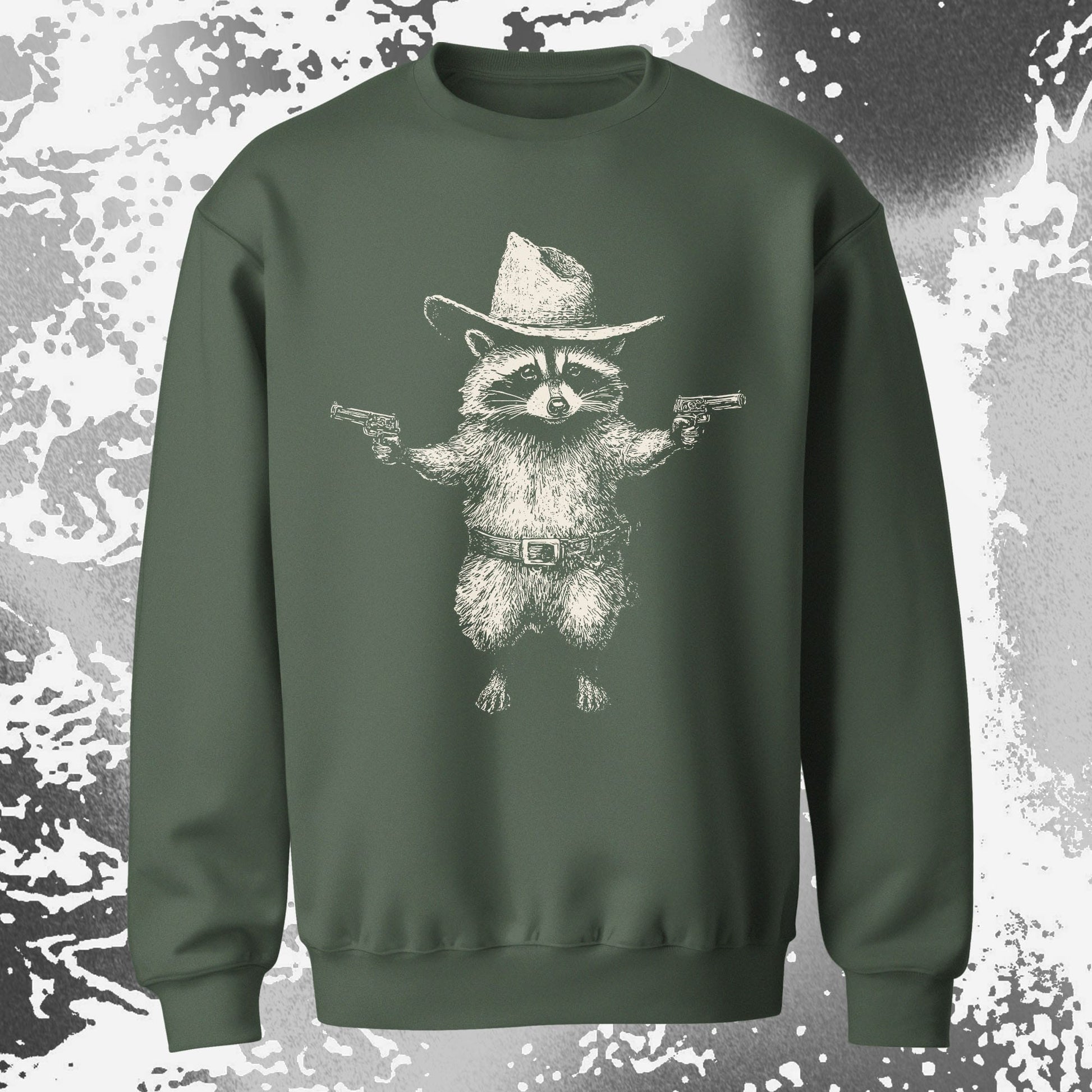 This little cowboy raccoon stands like he’s ready to defend his snack stash with pure attitude. It’s a playful take on wild west chaos that feels bold, silly, and strangely relatable.