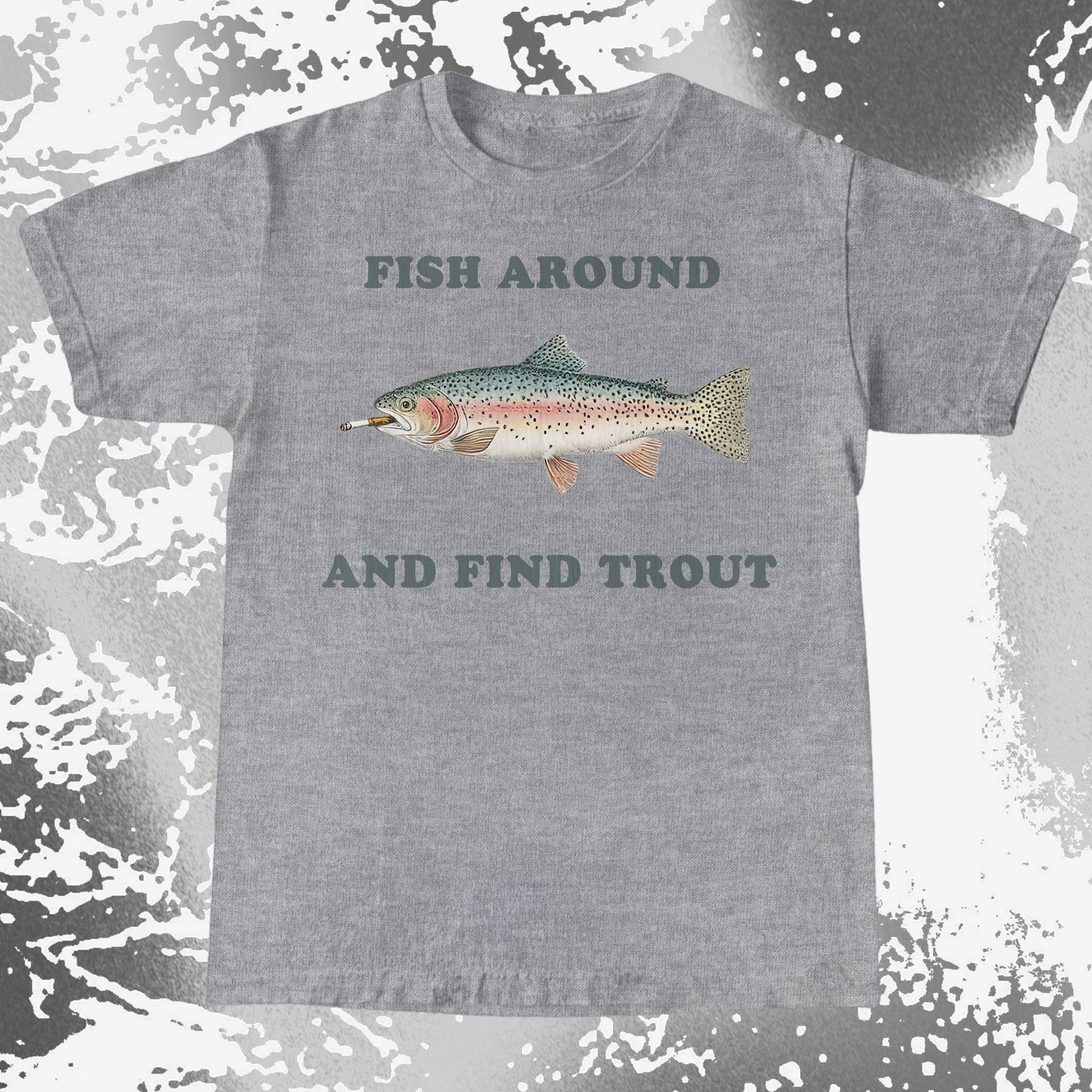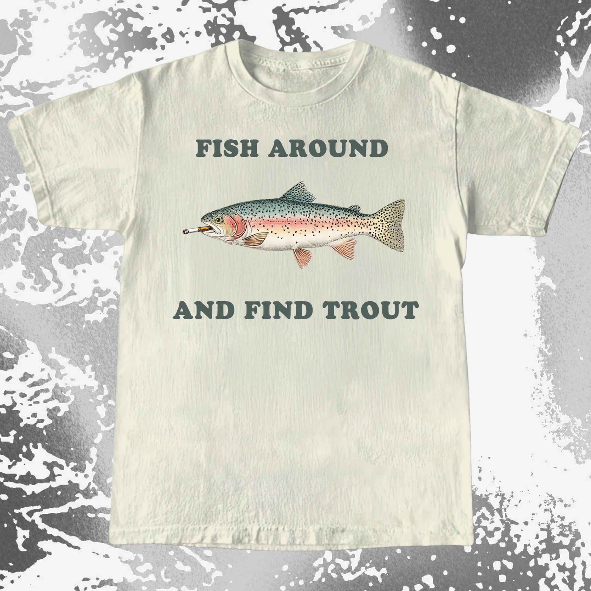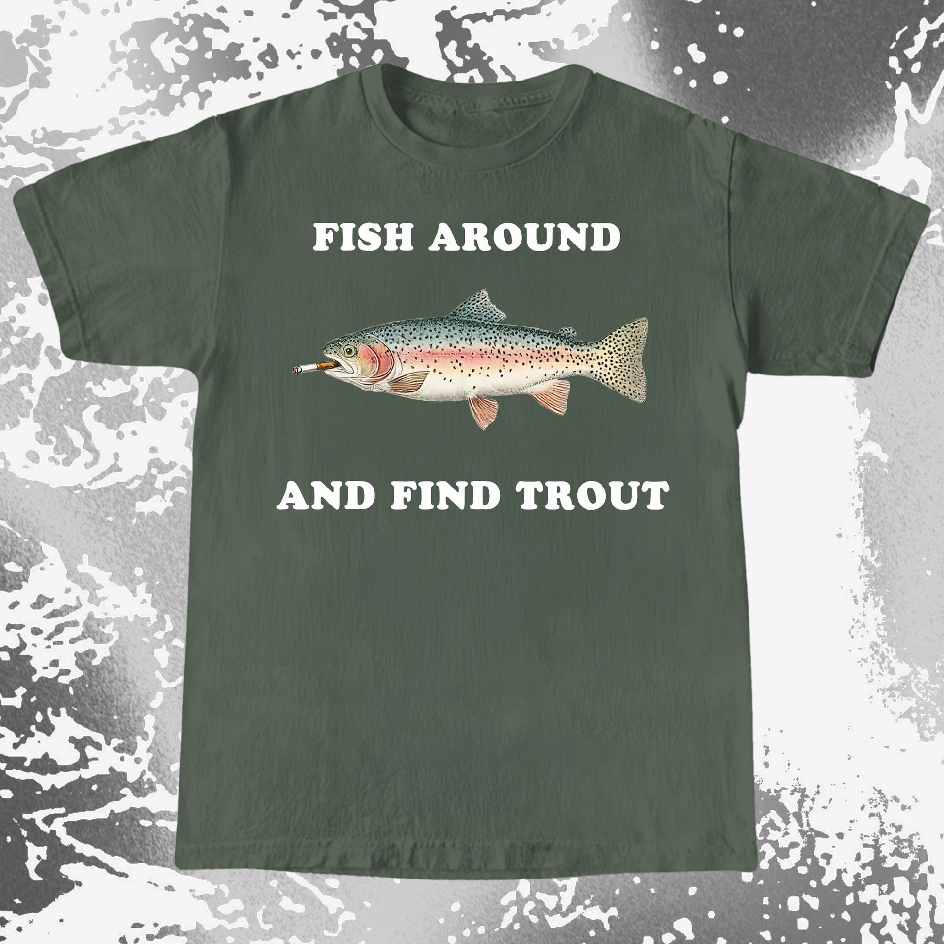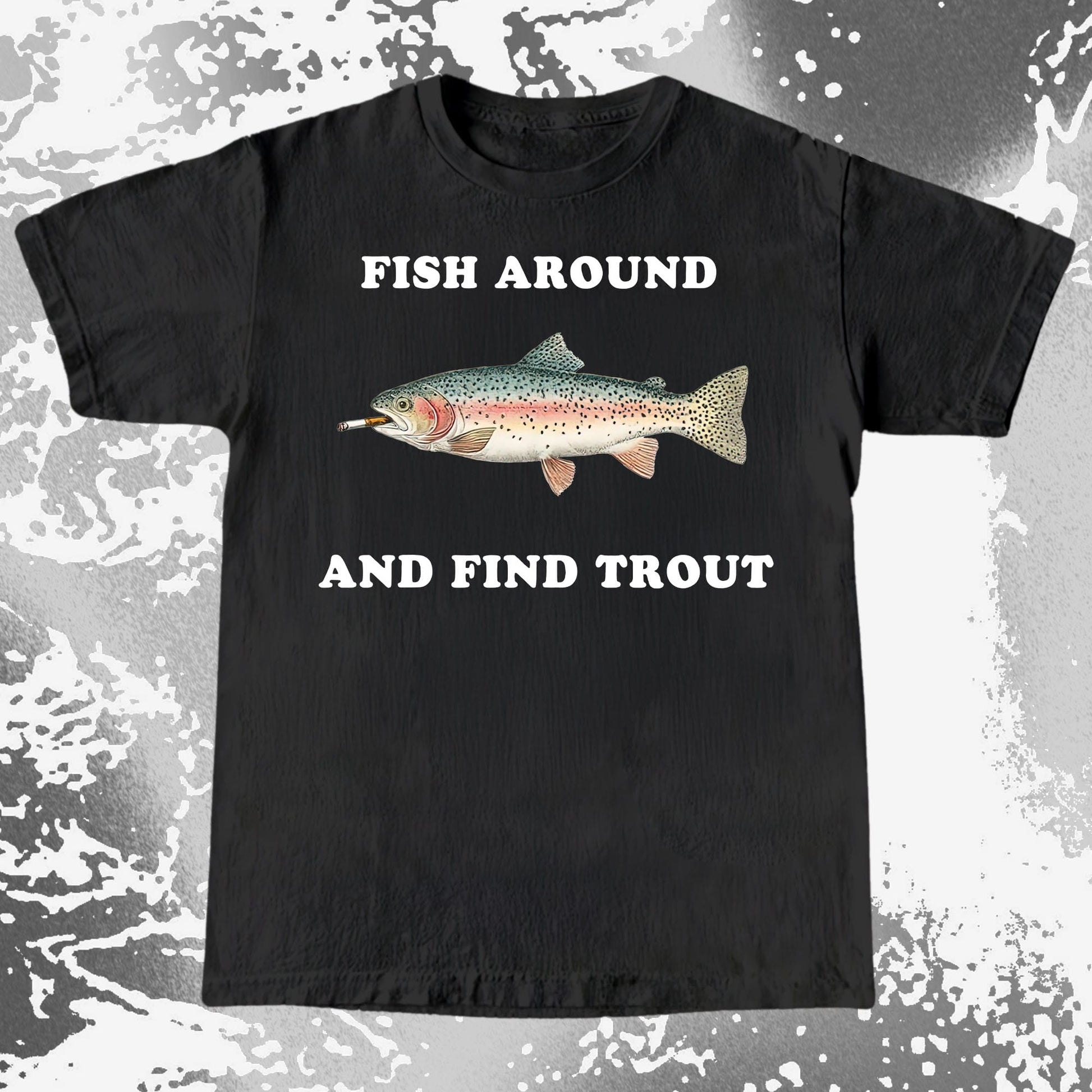 A vintage-style trout with a cigarette and a warning you probably deserve. “Fish around and find trout” is quiet humor for people who enjoy fishing, sarcasm, and learning the hard way. Subtle, dry, and a little unbothered.