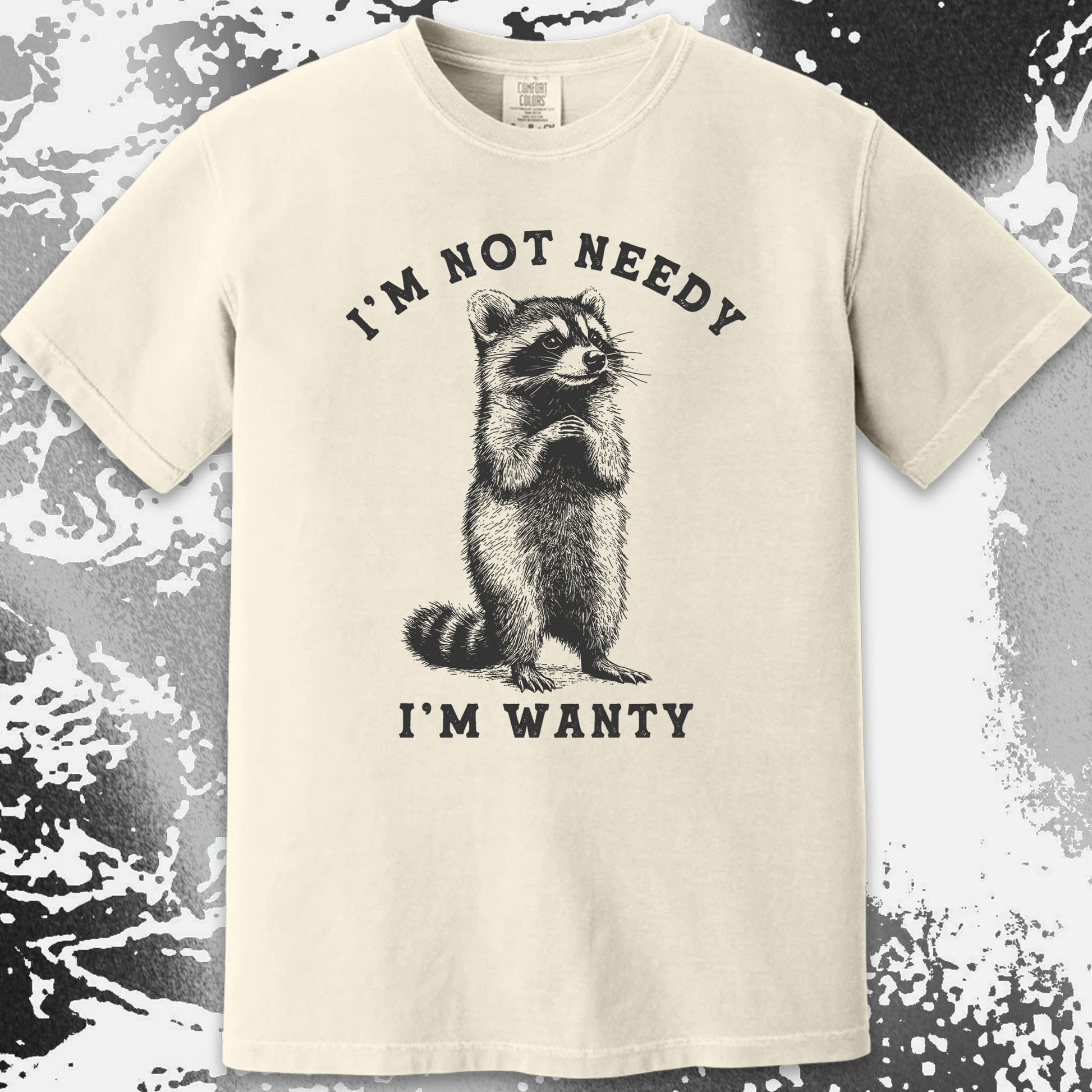 For the people who don’t just need snacks and attention, they want them aggressively. This “I’m Not Needy I’m Wanty” raccoon shows off clingy-but-cute energy, perfect for anyone who loves a little chaos with their affection.