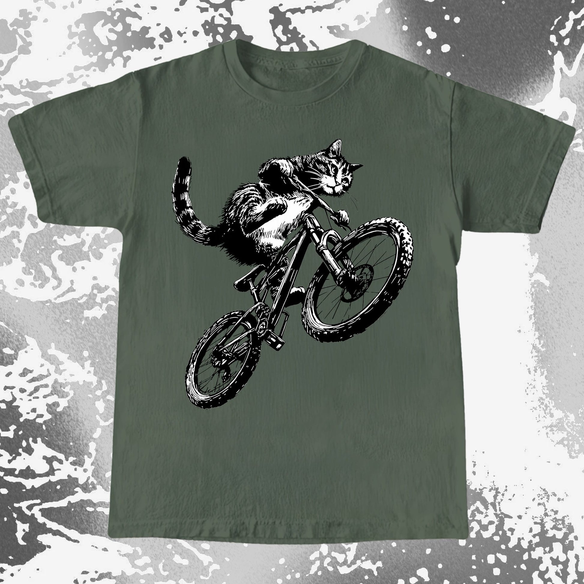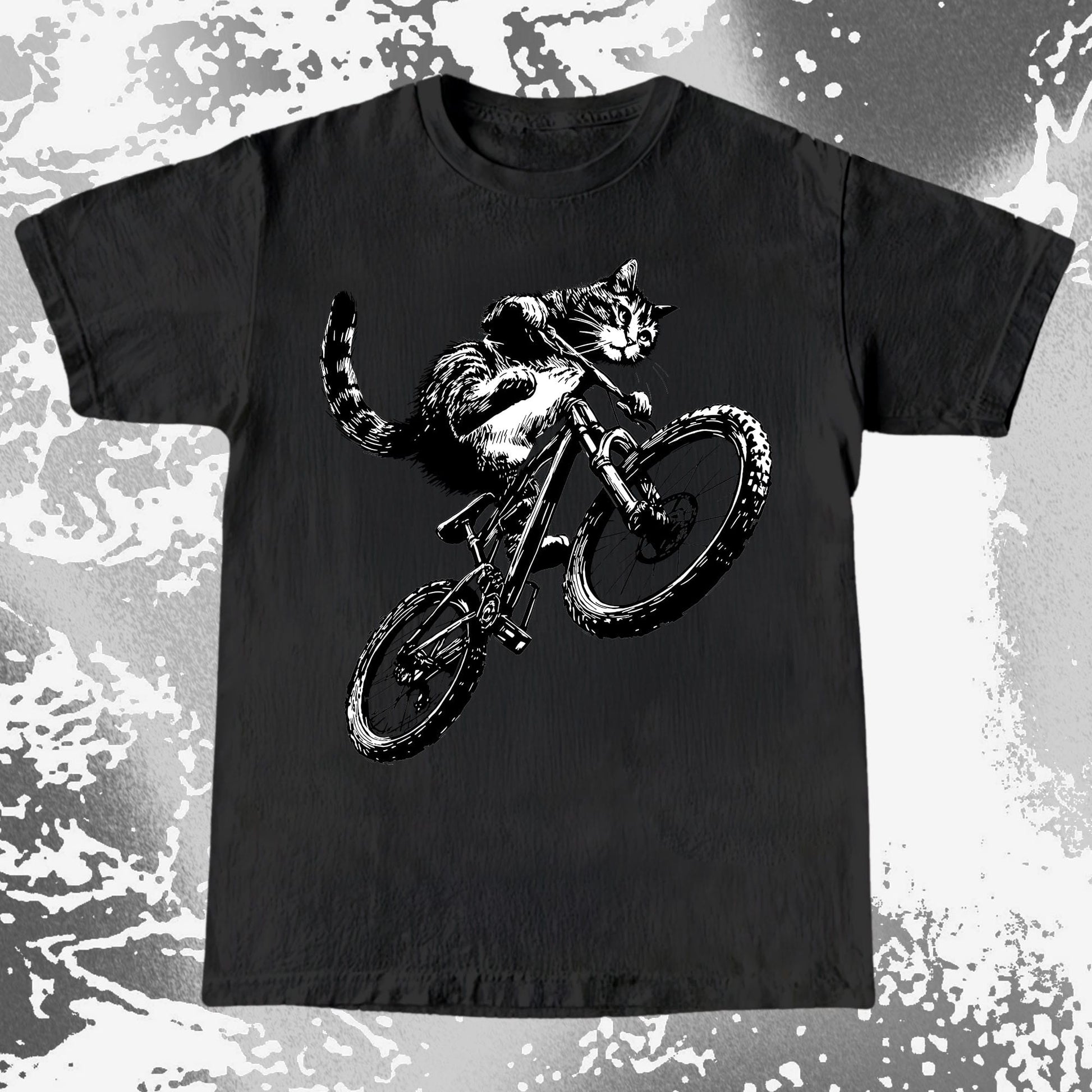 Mountain Bike Cat Shirt, Feral Motion Line Art Aesthetic