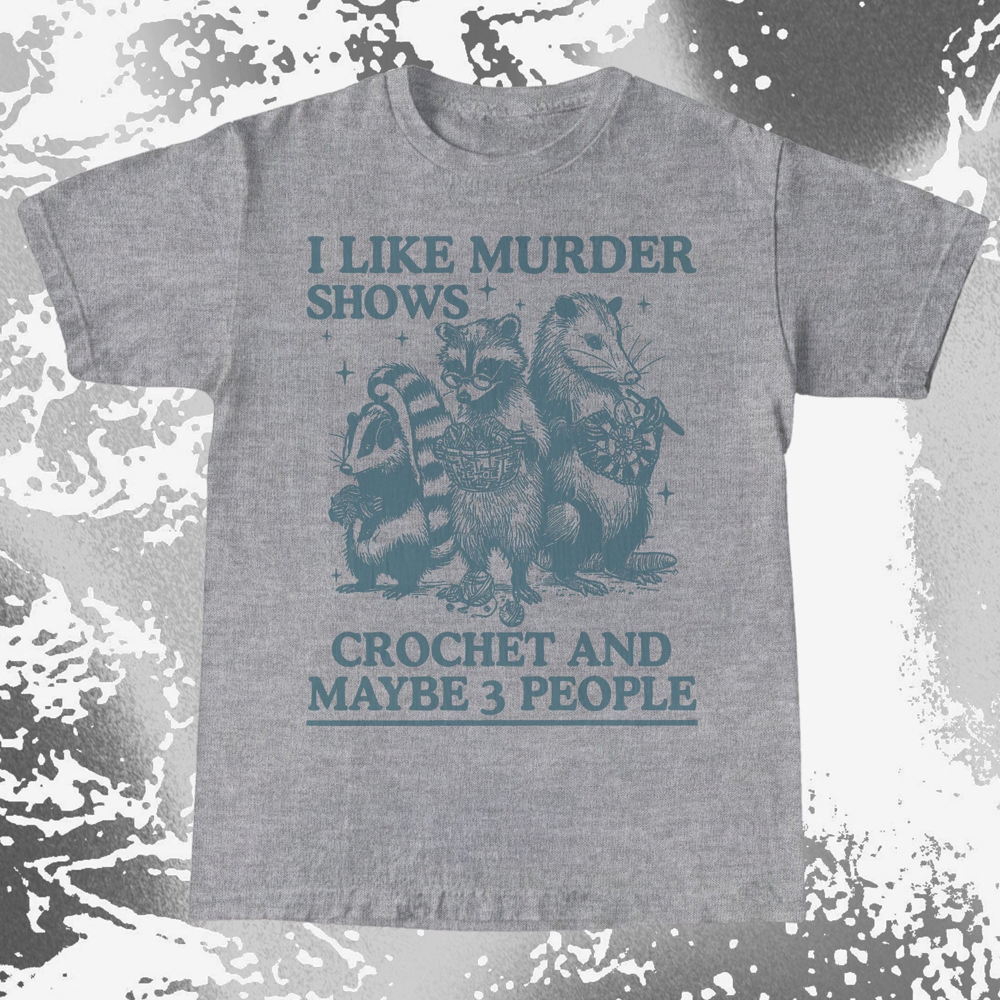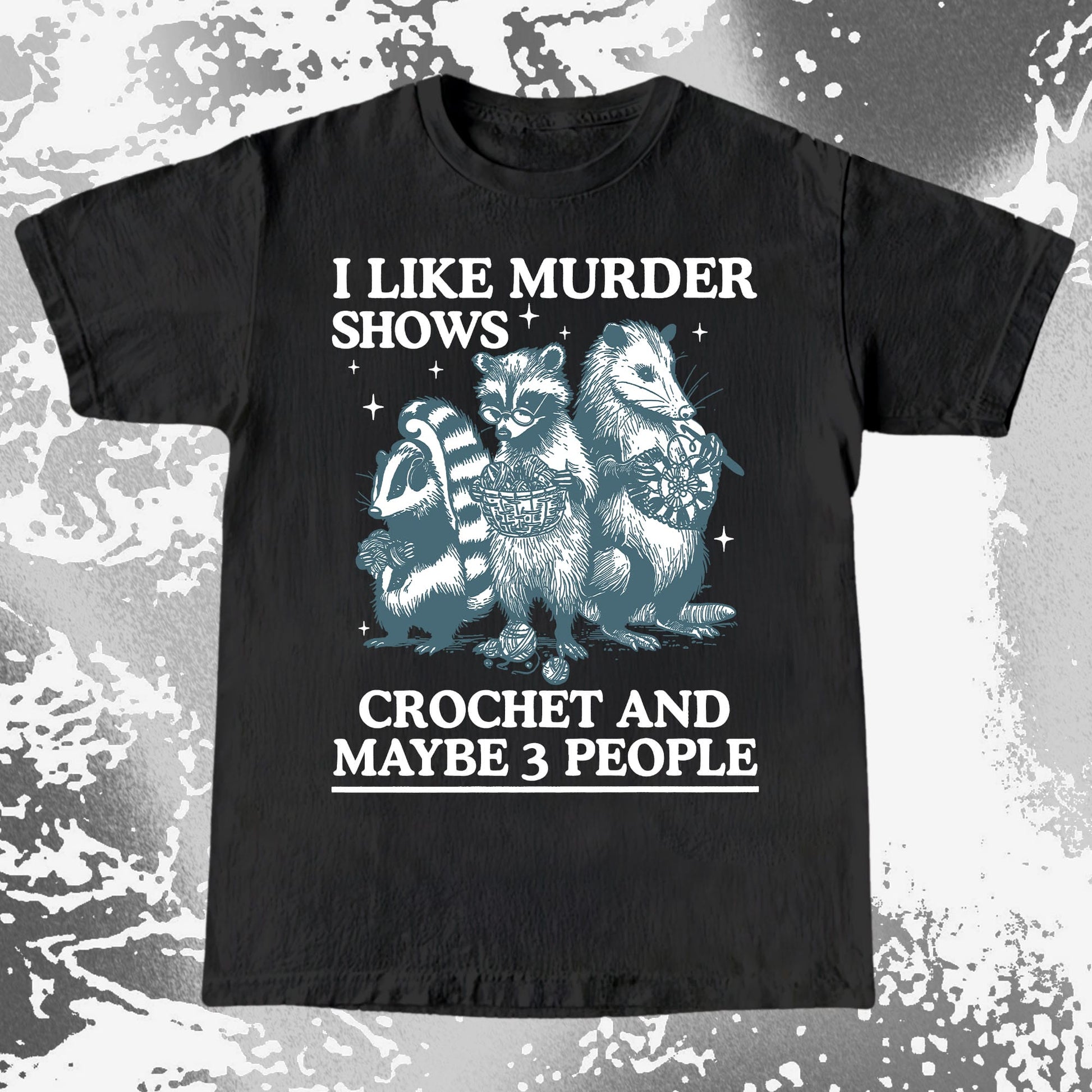 Funny Raccoon Badger Opossum “Murder Shows & Crochet” Shirt