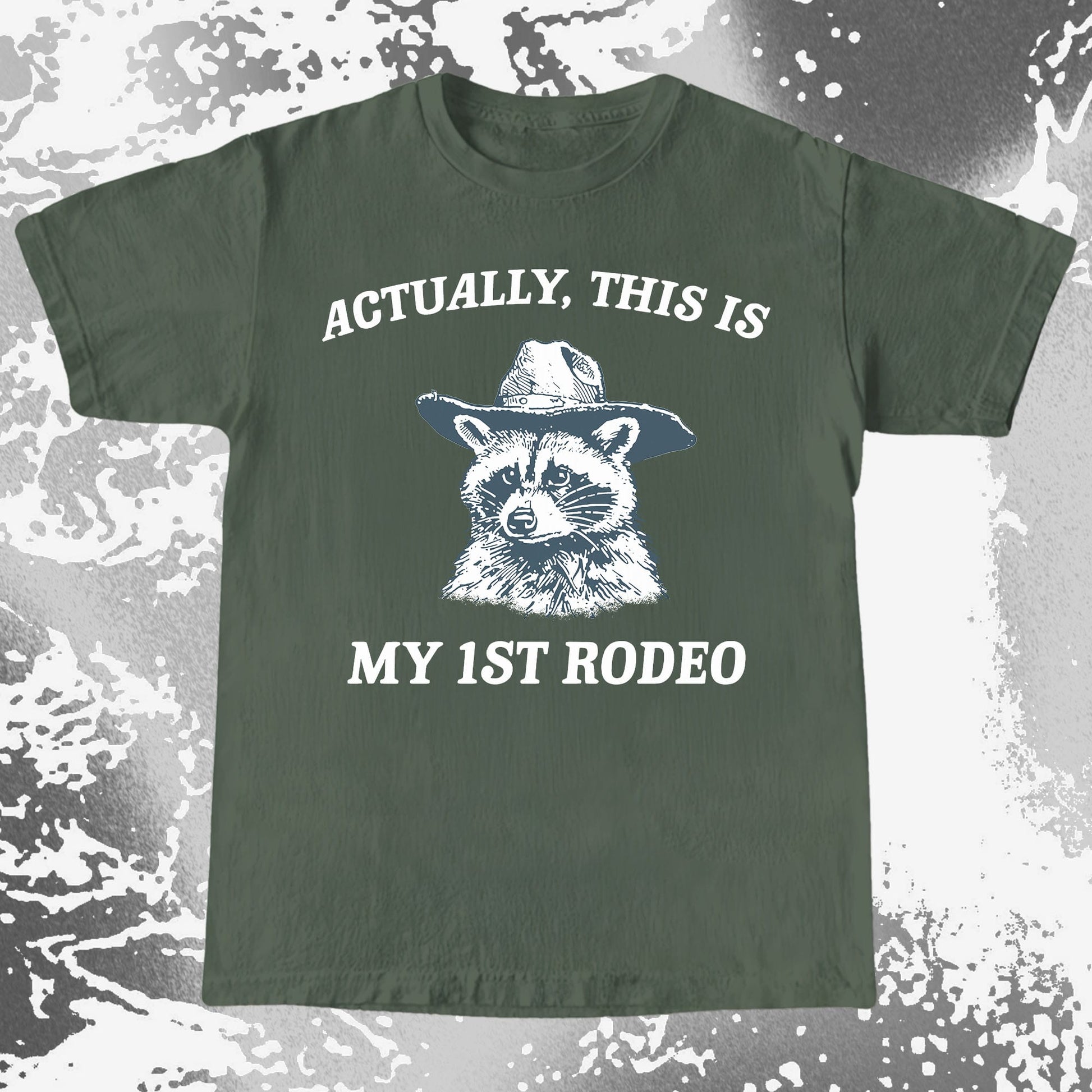 Funny Raccoon Cowboy Actually This Is My 1st Rodeo Shirt