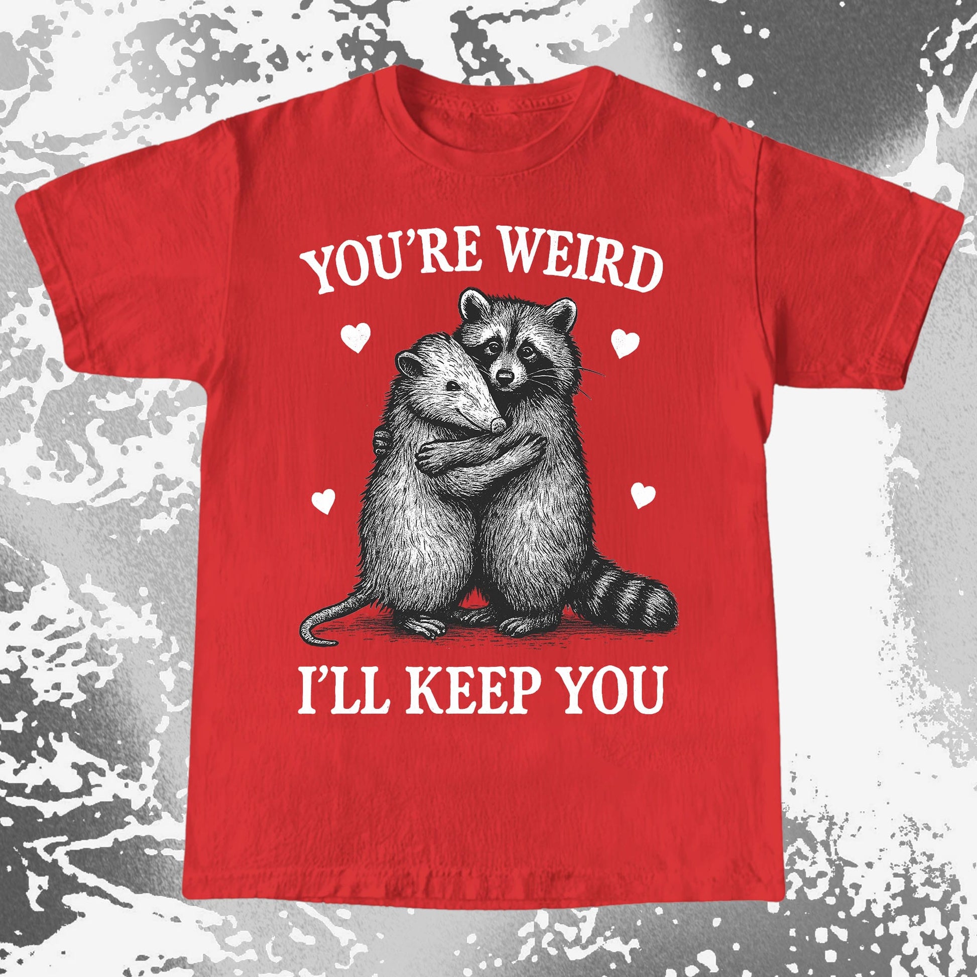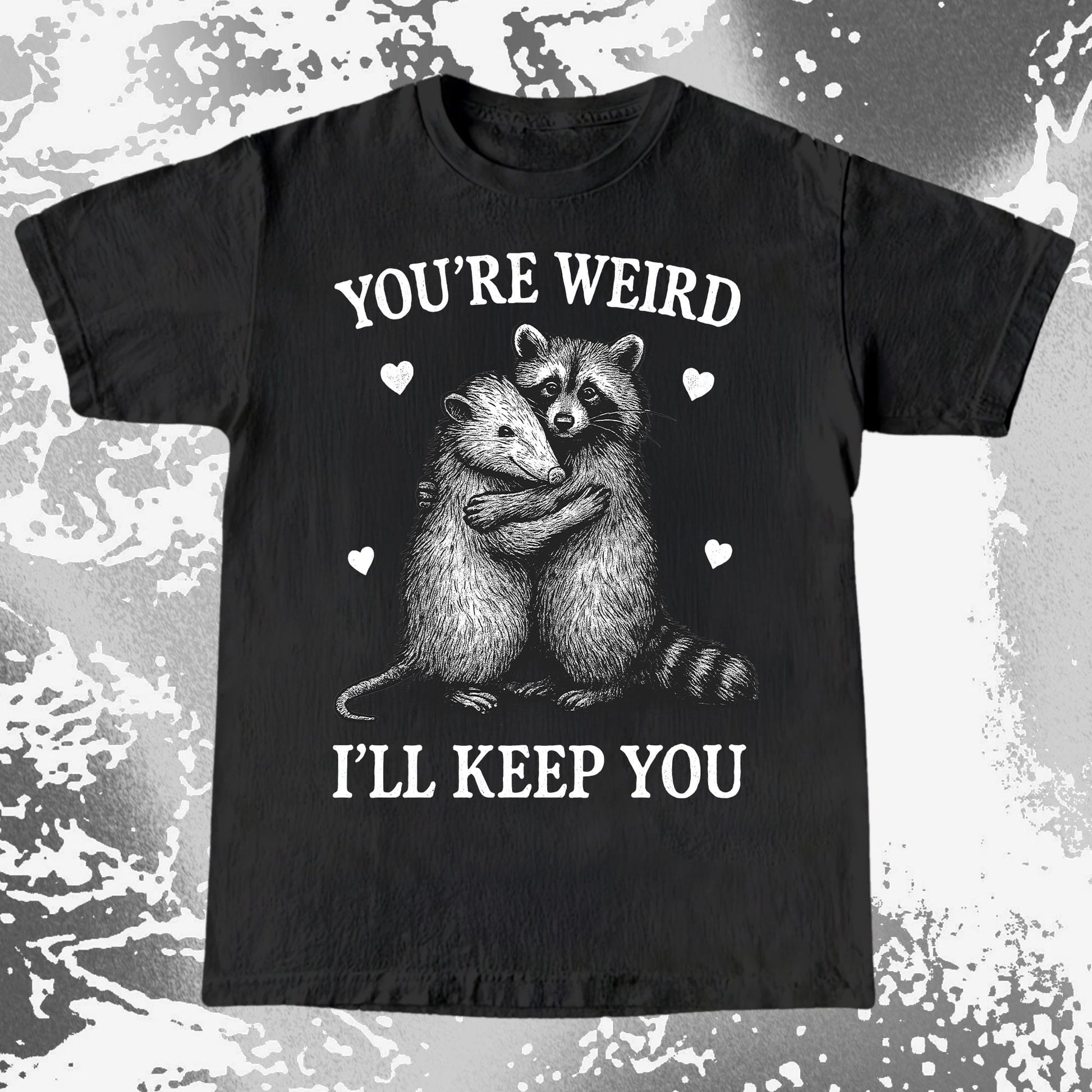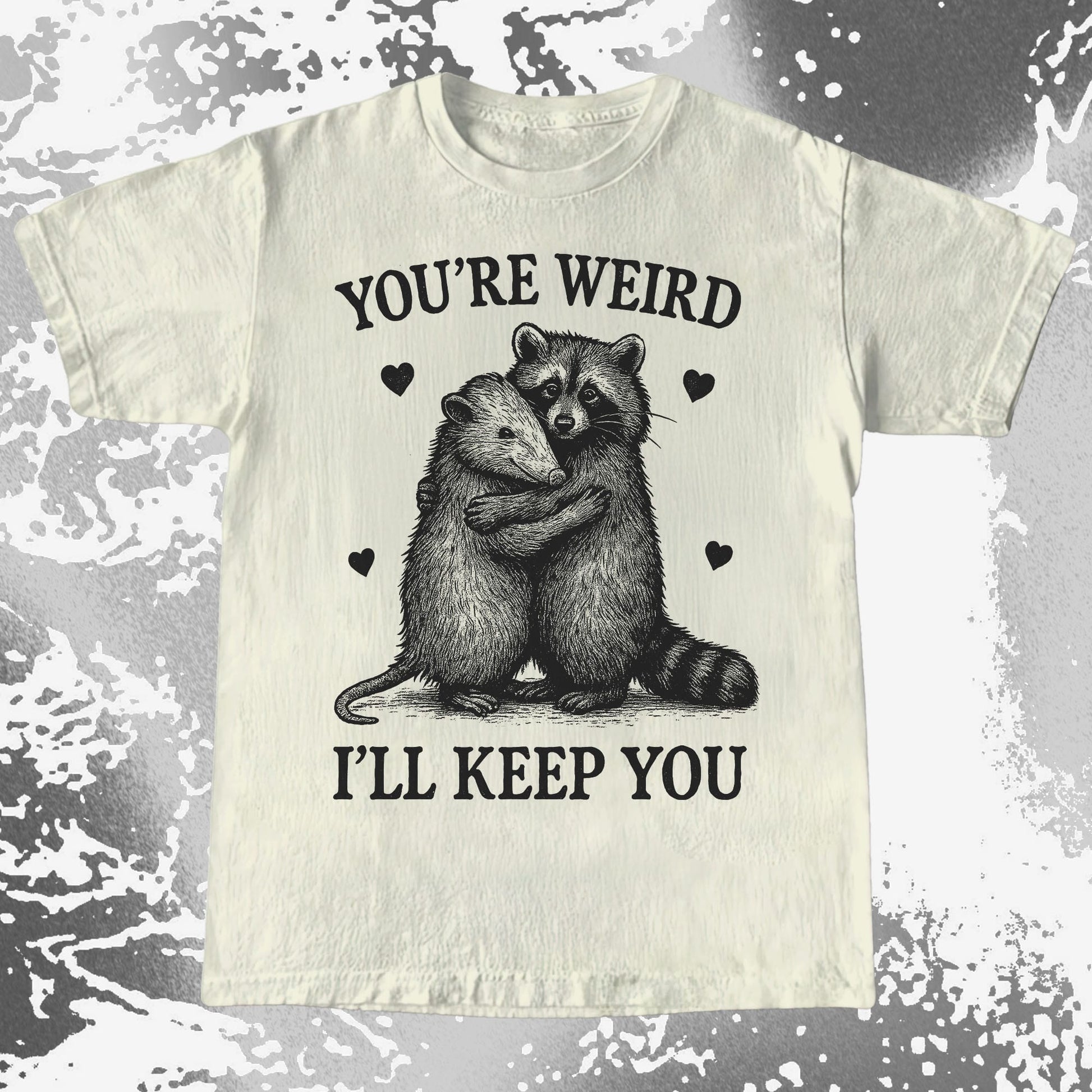 This raccoon and opossum hug like two lovable weirdos who found their perfect match. It’s a sweet funny reminder that the right people keep you exactly as you are and love you even more for it.