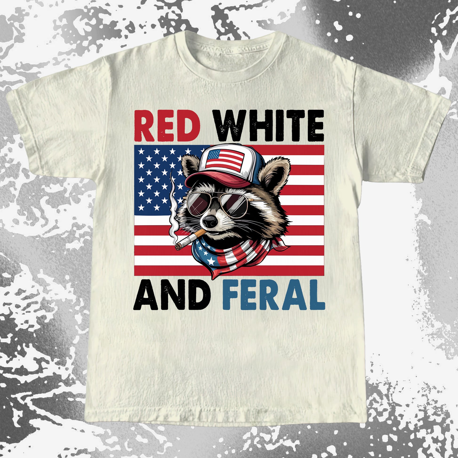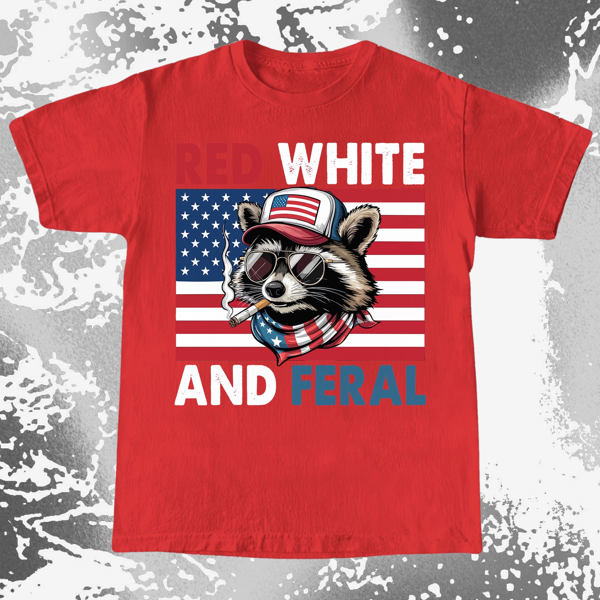 Red White and Feral Raccoon Shirt, Patriotic Rebel Aesthetic