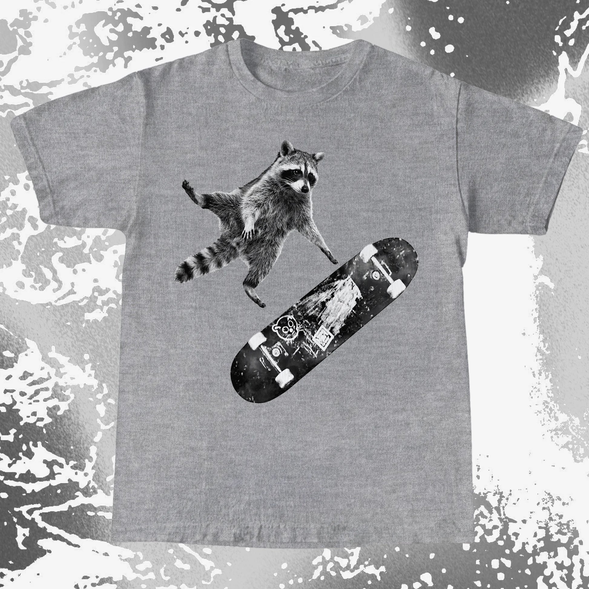Skateboarding Raccoon Shirt – Mid Air Chaos Tee