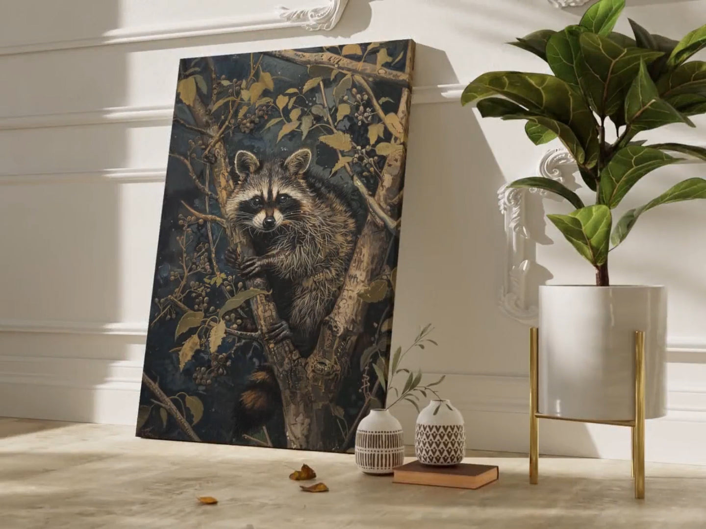 Vintage Raccoon Canvas Wall Art | Moody Forest Decor for Chaos Lovers
